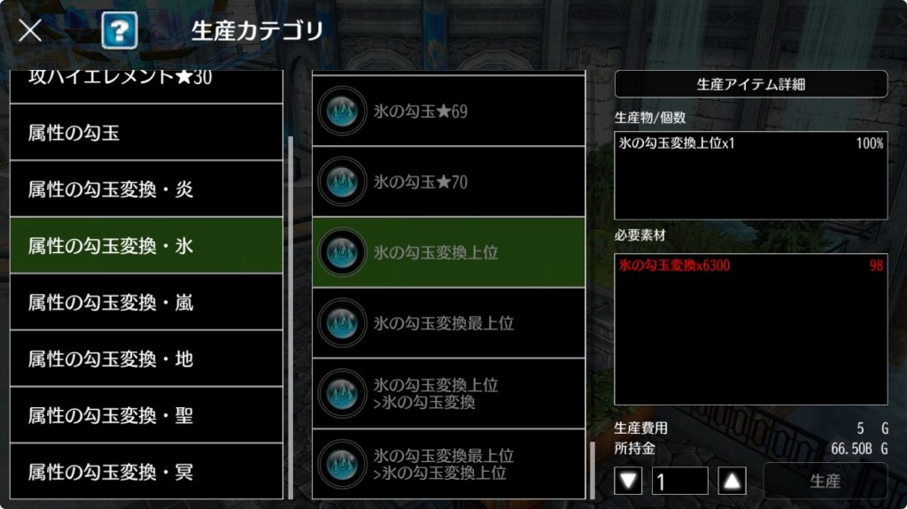 ★56から上の勾玉へは、必要な勾玉変換の数が多すぎるので一度「勾玉変換上位」という別のアイテムを作ってから変換を行います。