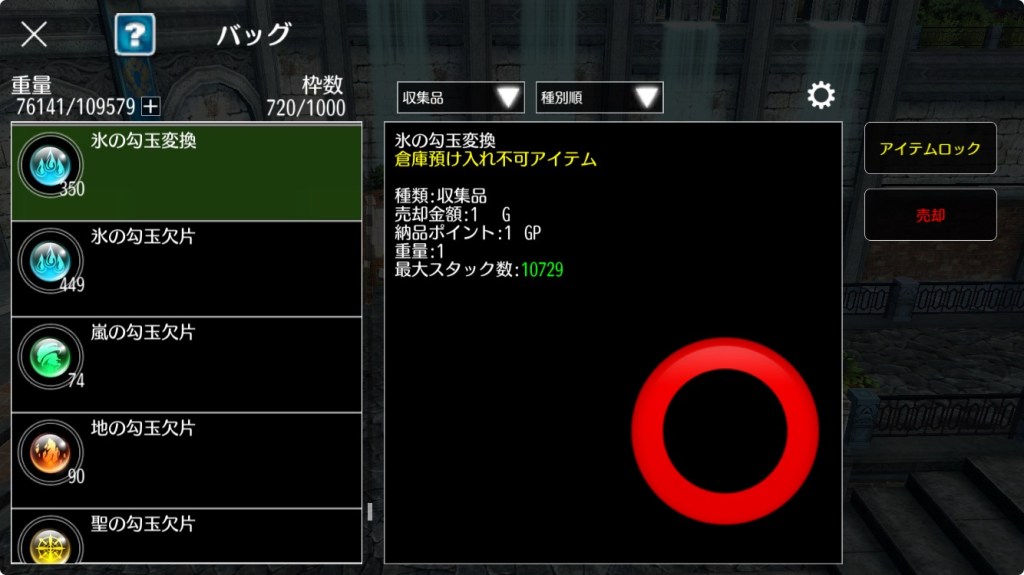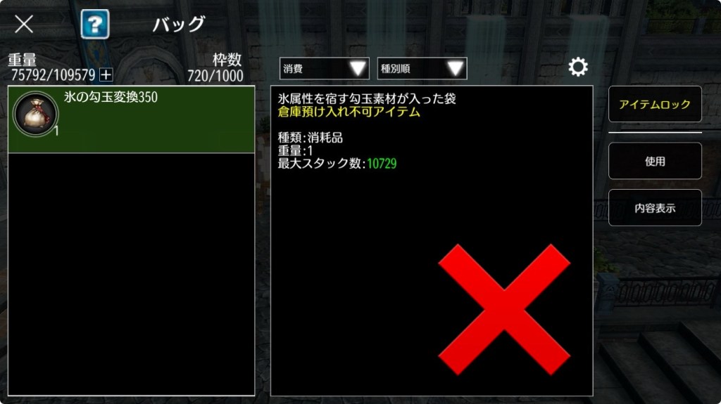 勾玉は倉庫預入不可アイテムのため、必ず装備するキャラクターで変換を行なってください。